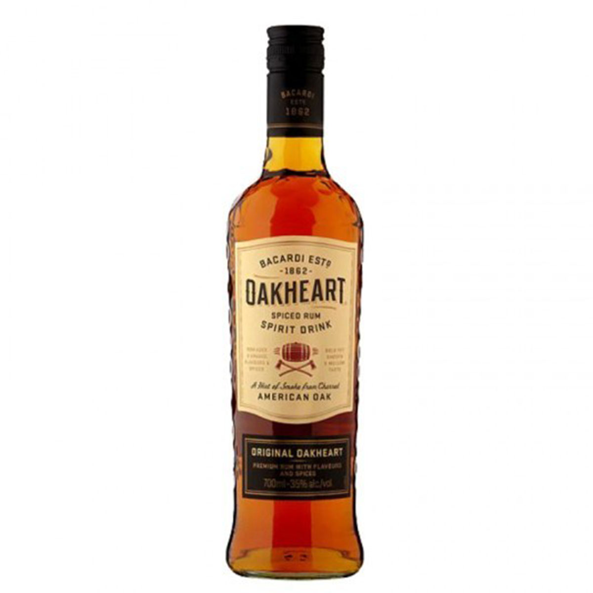 Bacardi Oakheart este o bautura condimentata, pe baza de rom si este denumit astfel deoarece unele romuri sunt maturate in butoaie de stejar folosite anterior pentru a depozita bourbon. Aparut abia in 2011, este „mezinul” familiei Bacardi, cel mai premiat brand de rom din toate timpurile, cu peste 550 de premii castigate. Specialistii spun ca aceasta varianta a fost inventata special pentru Coca-Cola, cele doua imbinandu-se perfect.
