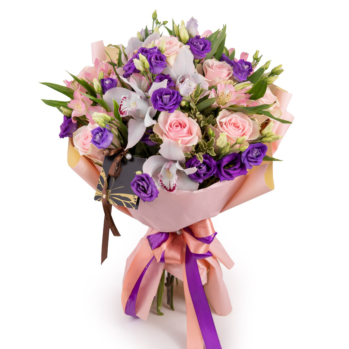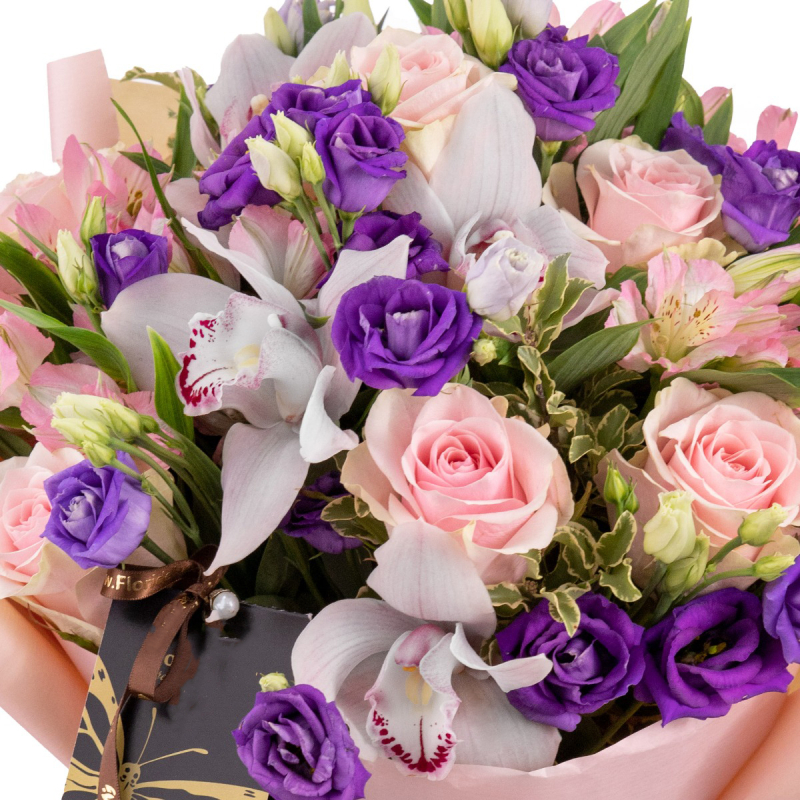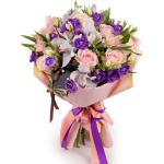 Buchet trandafiri, orhidee, eustoma si alstroemeria- Cu Surprize.md florarie online este foarte simplu sa trimiti flori si sa ii surprinzi pe cei dragi! Comanda buchete flori primavara, buchete martisor, buchete ziua mamei cu trandafiri, orhidee, eustoma si alstroemeria, iar noi livram direct la usa! Buchetul este realizat in nuante pastelate si contine orhidee imperiala, trandafiri, eustoma si alstroemeria.