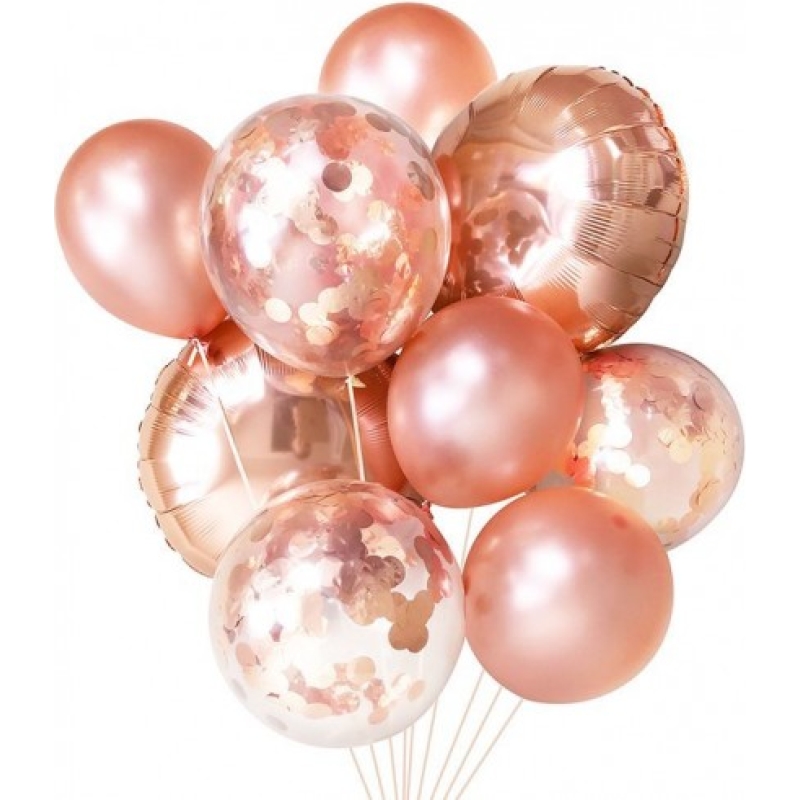 Set din Baloane cu Heliu mixat cu culorile auriu-portocaliu. Cea mai frecventă asociere pe care o facem cu auriul este cea referitoare la lux si bogăție. Culoarea portocaliu este o culoare caldă, portocaliul simbolizează iluminarea, cunoașterea, căldura, bogăția.
