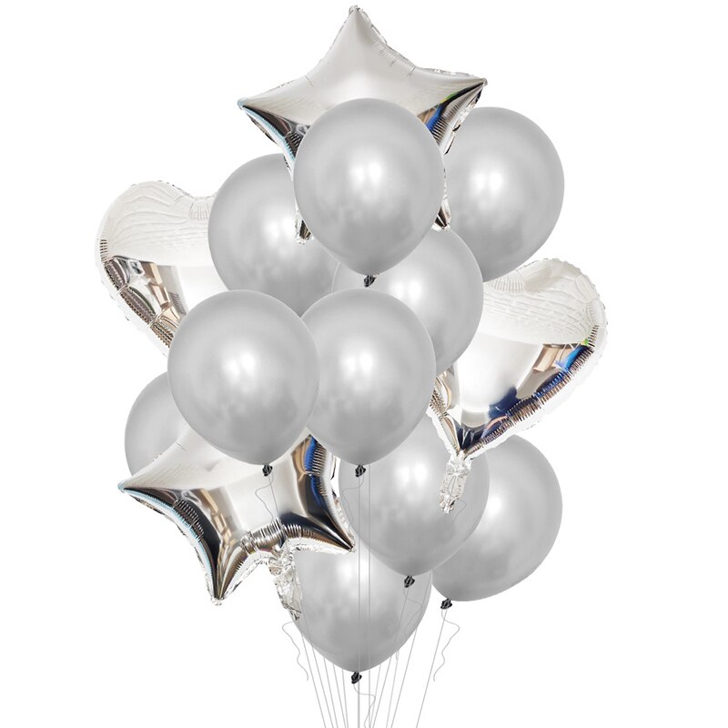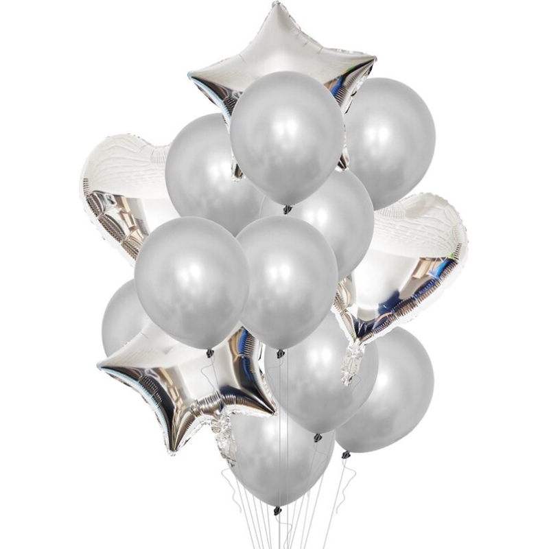 Set Baloane cu Heliu „Argint” creat pentru persoane cu gusturi fermecătoare și de eleganță. Este o “specie” de alb care se delimitează de acesta datorită incidenței sale multiple la metalul prețios Argint, iar cuvântul „argint” însuși derivă dintr-un cuvânt sanscrit însemnând alb și strălucitor.