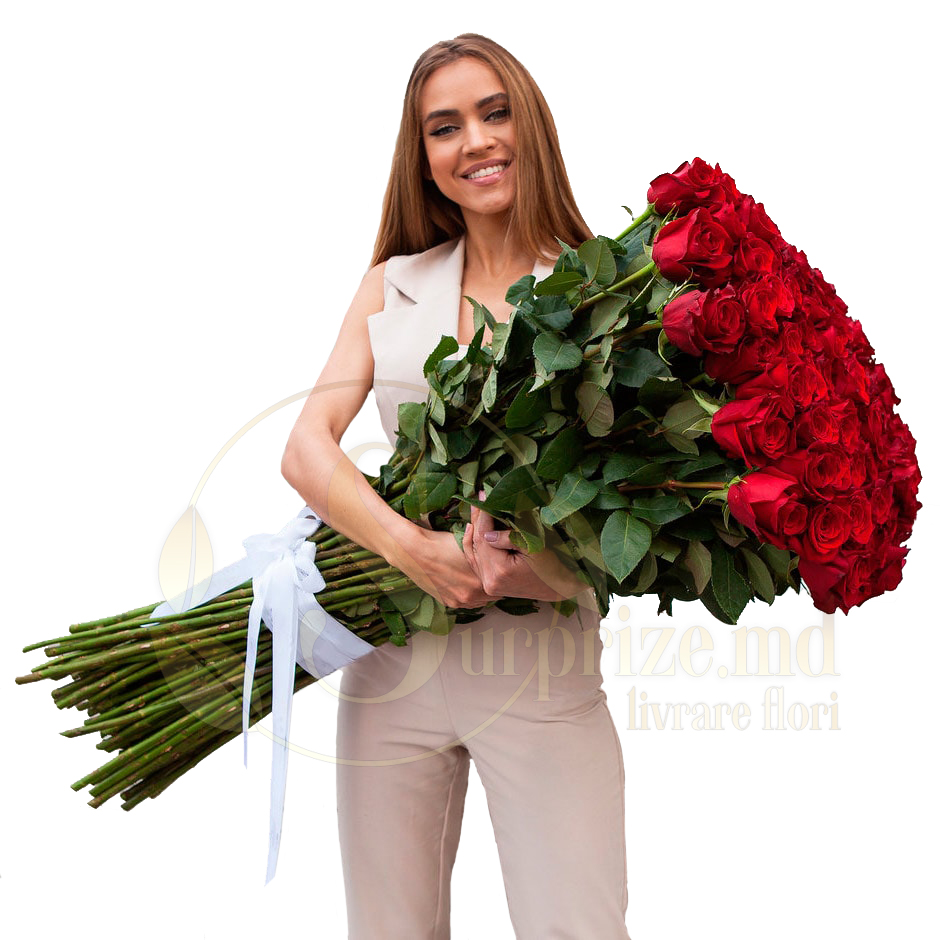 Daruieste un buchet de trandafiri inalti si arata-ti iubirea in cea mai pura forma. Comanda buchet de trandafiri 1 metru online cu livrare gratuita in Chisinau.